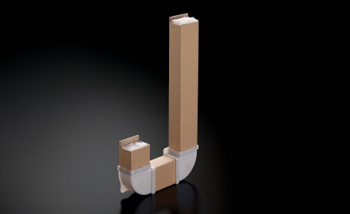 Applying know-how obtained in the development of acoustic conditioning panels, we developed an Acoustic Absorber (patent pending) — a compact J-shaped resonance tube that eliminates standing wave of a specific frequency — and installed two of them in the NS-5000. The speaker's uncomplicated cuboid enclosure helps consolidate internal standing waves at a specific frequency and makes it easy for the Acoustic Absorber to target and suppress that frequency. This eliminates the need for a large amount of sound-absorbing materials inside the enclosure, and helps bring the natural acoustic resonance out of the original music. Acoustic Absorbers also ensure a remarkable continuity in tone between the woofer and the midrange, ensuring that, unlike in a conventional enclosure filled with a substantial amount of sound-absorbing materials, much of the acoustic energy in the high frequency range generated by the woofer is kept intact.