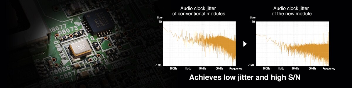 Ключевым устройством, определяющим качество передаваемого по сети звука, является модуль Original Network Module, который содержит высокоточную схему с низким уровнем джиттера, улучшающую воспроизведение источников звука высокого разрешения. Чистая генерация тактовых импульсов без создания тактовым генератором джиттера значительно уменьшает шум от джиттера при воспроизведении содержимого из сети и через Bluetooth® и улучшает отношение сигнала к шуму. Устройство точно передает тонкие различия в звуковых характеристиках звука высокого разрешения.
