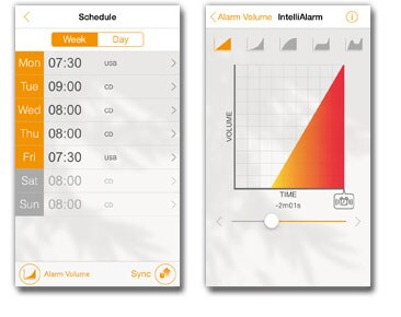 2) IntelliAlarm — интеллектуальная функция будильника для мягкого пробуждения: установка времени, настройка плавного вывода звука и громкости.