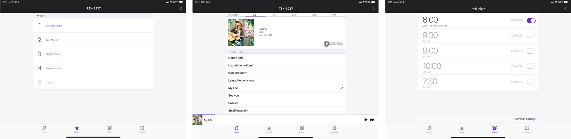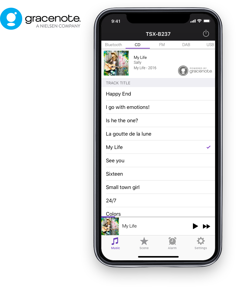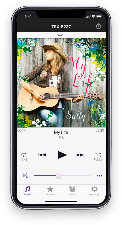 С помощью своего смартфона вы сможете дистанционно управлять TSX-B237 — включать и выключать питание, регулировать громкость и выбирать композиции — даже если вы не находитесь рядом с TSX.