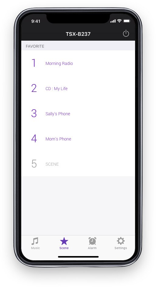 Просто зарегистрируйте свои любимые источники музыки и содержимое в «сцену» (Scene), чтобы затем включать музыку одним касанием.