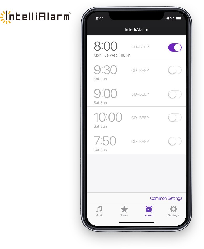Встроенная функция будильника с удобным управлением со смартфона поможет вам проснуться в хорошем настроении. Например, выберите радио в качестве источника будильника и просыпайтесь утром под музыку любимой радиостанции.