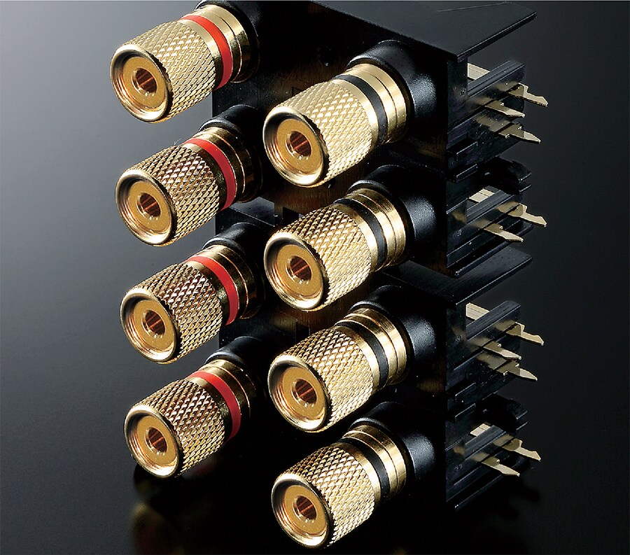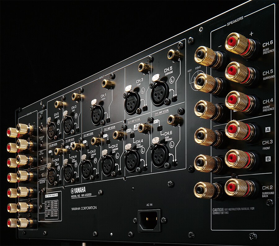 На задней панели MX-A52000 размещены высококачественные разъемы с золотым покрытием, которые совместимы с вилочными наконечниками (тип Y) – это оптимальный способ подключения акустических систем.
