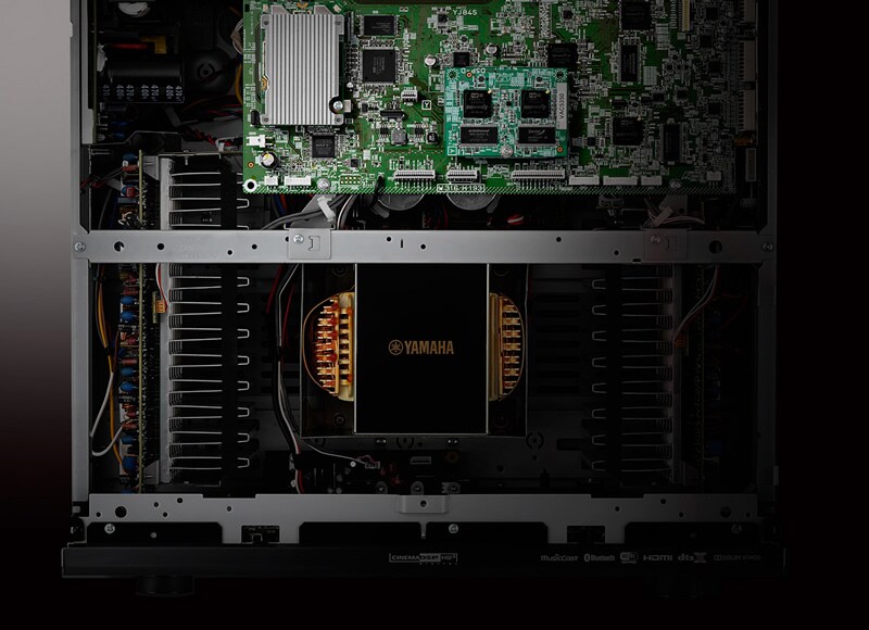 Каждый компонент AV-ресивера влияет на качество звука. При производстве моделей серии AVENTAGE особое внимание уделяется отбору наиболее качественных комплектующих (в число которых входят производительный усилитель с большим радиатором для гашения вибраций, специальный мощный силовой трансформатор, устройства ЦАП с высокими характеристиками и т.д.), которые позволяют получить наилучшее возможное качество. Более того, звукотехники используют строгие процедуры тестирования, чтобы оптимально настроить звук ресивера.