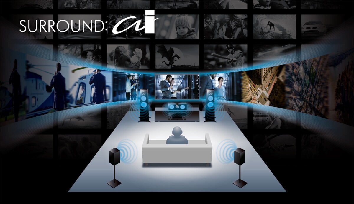 9.2-канальная модель серии AVENTAGE, обеспечивающая превосходное воспроизведение трехмерного звукового поля и поддерживающая новейшие функции Surround:AI.
