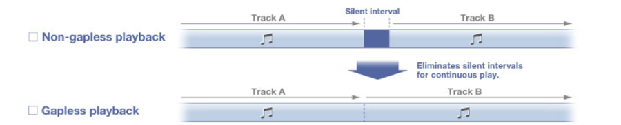 - Поддержка безынтервального воспроизведения, осуществляемого без прерываний