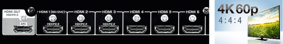 Этот AV-ресивер полностью поддерживает новейшие стандарты HDMI. Благодаря сквозному пропусканию видеосигнала высокого разрешения 4K с частотой 60 кадров в секунду не происходит ни малейшего ухудшения качества изображения. При этом соблюдается стандарт защиты авторских прав HDCP2.2 в отношении передачи 4K-видеоконтента.