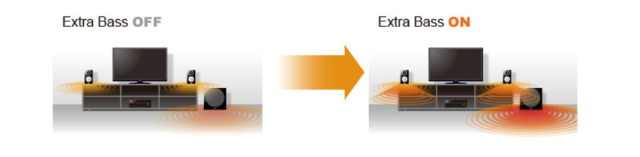 Технология Extra Bass обеспечивает насыщенное воспроизведение баса даже при использовании небольших акустических систем