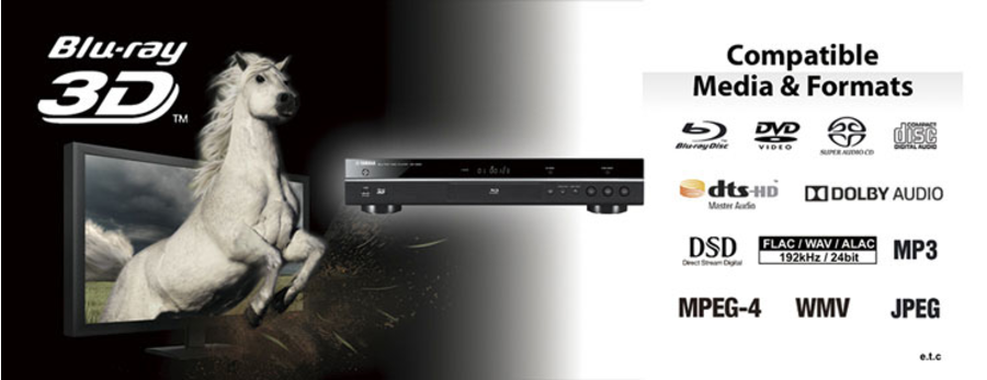 This Blu-ray Disc Player supports playback from Blu-ray 3D™ discs, as well as from SACD and DVD discs. It is compatible with the Dolby® True HD and DTS-HD Master Audio™ surround sound formats. Additionally, for network use, it can handle FLAC and ALAC 192 kHz / 24-bit and DSD 5.6 MHz high resolution audio formats. You can enjoy a wide variety of video and audio content with just this one player.