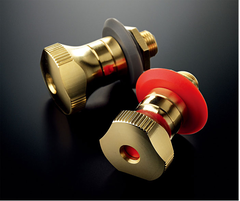 Акустические клеммы — последнее звено в цепи аудиосигнала этого усилителя — также созданы с особой тщательностью и вниманием к деталям. Оригинальные винтовые клеммы с большими головками выточены из латуни, и обеспечивают надежное соединение без потерь в качестве звука. Они не только элегантно выглядят, их форма прекрасно приспособлена для захвата, а затягивание требует минимального усилия.