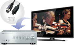 Усилитель оснащен цифровыми аудиовходами оптического и коаксиального типов. Оптический разъем предназначен для приема аудиосигнала от телевизора, а коаксиальный — от проигрывателя дисков Blu-ray. Сигнал остается в цифровой области, и это обеспечивает чистое, первозданно динамичное звучание от любого источника: от спортивных и других программ до кинофильмов и концертов.