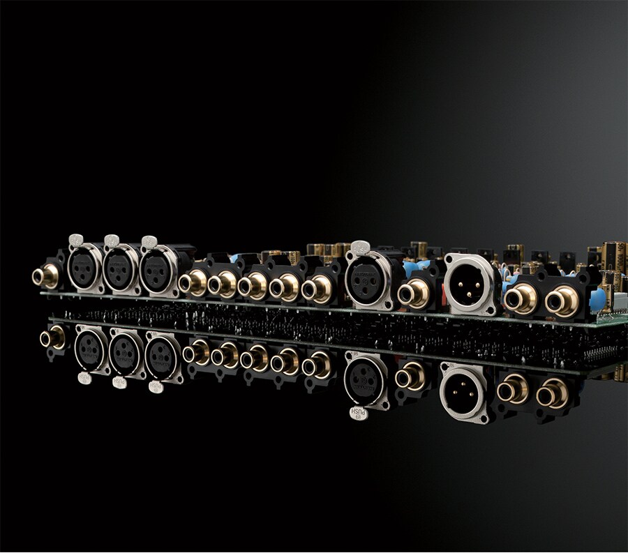 Конструкция в виде "разворота книги" для печатной платы предусилителя предусматривает зеркальные пути сигнала левого и правого канала, чтобы обеспечить точное сочетание и соответствие их характеристик.