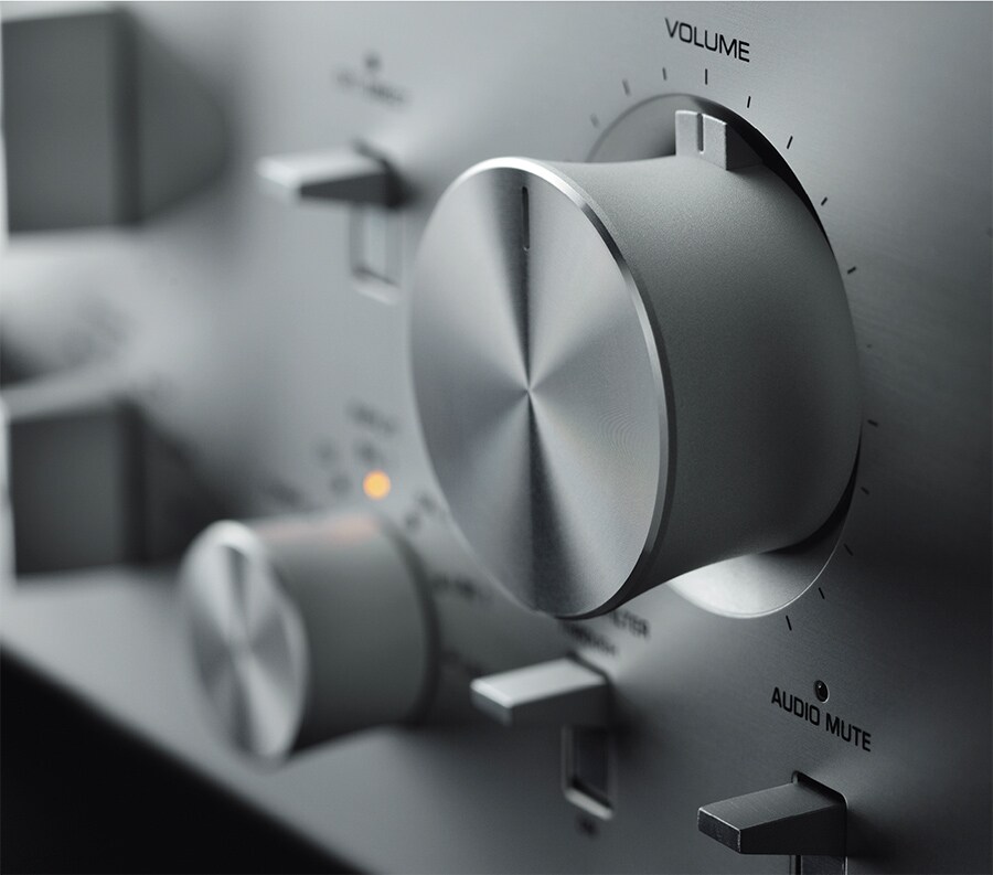 В конструкции тяжелого по ощущениям и высокоточного регулятора громкости используются шариковые подшипники и тщательно обработанный алюминий. Переключатели также оптимизированы для удобства использования.