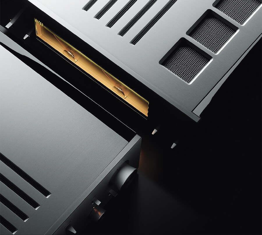 Передняя панель изготовлена из высококачественного алюминия, поверхность которого покрыта тонкими линиями, благодаря чему устройству выглядит изящно и лаконично. Эта стильная система не только позволит вам прослушивать аудио превосходного качества, но и украсит интерьер.