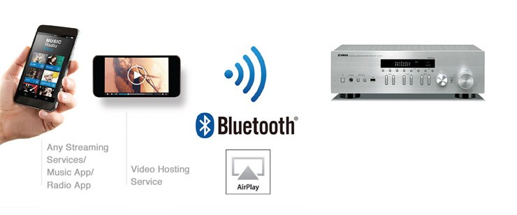 R-N602 — это ресивер и сетевой проигрыватель в одном устройстве. Он позволяет воспроизводить аудиофайлы, загруженные из Интернета и сохраненные на диске компьютера или в сетевой системе хранения данных. Можно также пользоваться сервисами потоковой музыки или слушать передачи Интернет-радио (через Airable). Специальное приложение Yamaha MusicCast позволяет по беспроводному соединению проигрывать мелодии, хранящиеся на смартфоне или планшете.