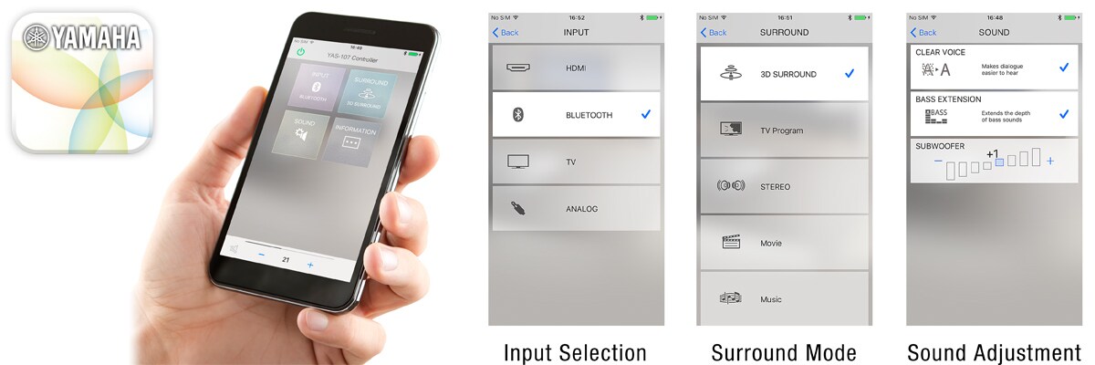 На тот случай, если вы хотите «копнуть глубже», предусмотрено интеллектуальное управляющее приложение HOME THEATER CONTROLLER, имеющее привлекательный и интуитивно понятный дизайн. Можно выбирать контент для воспроизведения, точно настраивать звуковые параметры, включать и выключать систему — и всё это путем удобного сенсорного управления со смартфона.