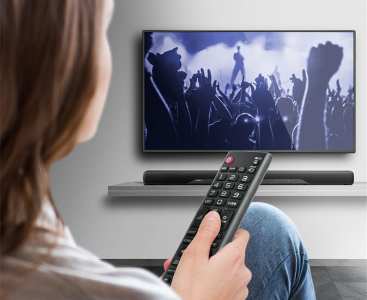 Имея высоту всего лишь 60 мм, центральный блок может быть установлен перед телевизором, не загораживая изображение. Его также можно прикрепить к стене, используя отверстия типа «замочная скважина», и получить потрясающий звук при малых габаритах — идеальное дополнение к вашему телевизору независимо от конфигурации оборудования.