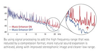 Функция Compressed Music Enhancer обеспечивает восстановление частот, утраченных при сжатии цифрового сигнала. В результате музыка всегда будет звучать так, как и должна.