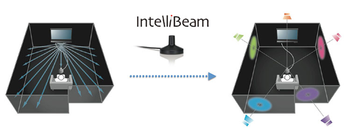 Система калибровки звука IntelliBeam автоматически формирует оптимальное звуковое поле. От пользователя требуется лишь нажимать кнопки, следуя подсказкам на экране. Система определяет характер акустической среды (форму и размерыу комнаты, материал стен), затем задает углы отражения звуковых лучей, фокусное расстояние, громкость и другие параметры. В результате достигается оптимизация звука в полном соответствии с акустическими свойствами помещения и с учетом позиции прослушивания.