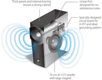Сабвуфер с большим 16-см динамиком использует уникальную фирменную технологию Advanced YST для формирования чистого, мощного баса. Электрическая схема с идеальной схемой заземления обеспечивает стабильное питание. Линейный фазоинвертор улучшает рассеяние звука и сводит до минимума нежелательный шум. Музыка и звуковые эффекты в фильмах воспроизводятся с удивительным реализмом.