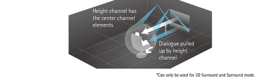 - Функция Dialogue Lift приподнимает в пространстве звук диалогов до середины экрана.