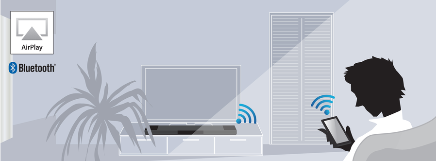Слушайте музыку со смартфона, используя беспроводное соединение Bluetooth. Для беспроводной передачи потоковой музыки с iPhone или iPad можно воспользоваться функцией AirPlay. Кроме того, режим ожидания Bluetooth предлагает удобство автоматического включения и выключения YSP-5600.