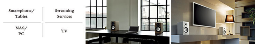 Полочные акустические системы-мониторы со встроенным усилителем и функциями для работы в сети. Отличное качество звука при воспроизведении музыки со смартфона, компьютера, телевизора, NAS-сервера, а также потоковых аудиоданных.