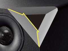 - 3-см купольный твитер для воспроизведения звука с высоким разрешением и 13-см вуфер с диффузором из композита A-PMD