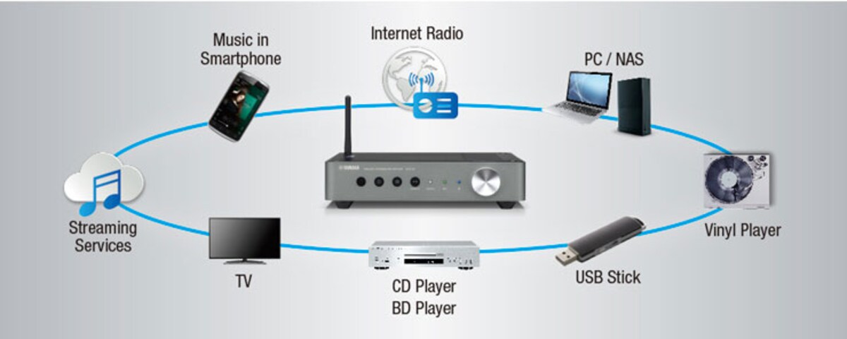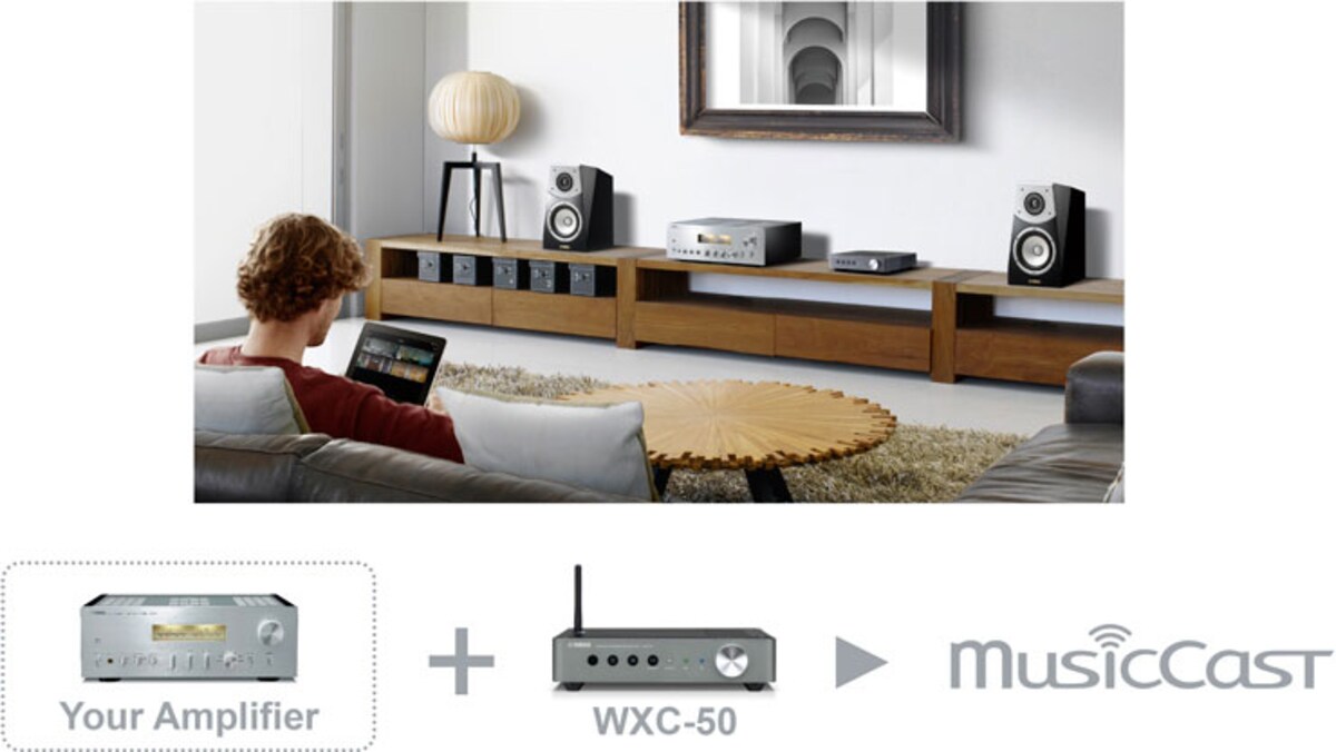 Система MusicCast основана на использовании высокоэффективной беспроводной сети передачи аудиоконтента, по которой цифровые музыкальные файлы со смартфона, ПК или сетевого хранилища можно передавать в потоковом режиме на другие находящиеся в доме устройства категории MusicCast. Предусмотрена также трансляция музыки с телевизора, Blu-ray проигрывателя и других внешних устройств, подключенных к WXC-50. Возможна и потоковая передача аудиоконтента со смартфонов или планшетов, подключенных по технологии Bluetooth, на устройства категории MusicCast, находящиеся в других комнатах.