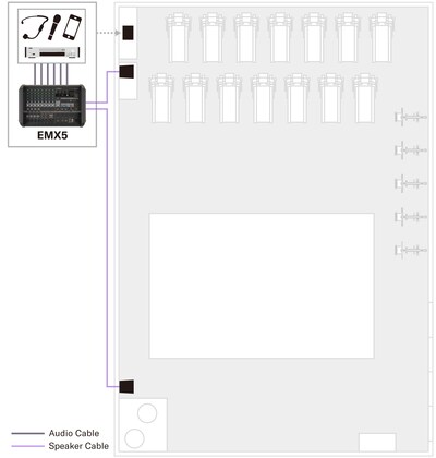 Простая система профессионального аудиооборудования, состоящая из микшера с мощным усилителем и прочных, легких, простых в установке громкоговорителей, подходящих для воспроизведения музыки в танцевальных школах, фитнес-центрах и подобных заведениях, в которых нужен высококачественный звук, несмотря на возможные бюджетные ограничения.
