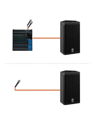 Такие модели, как, например, входящие в серию DXR или DBR от Yamaha, позволяют напрямую подключать микрофоны и имеют базовые встроенные функции микшера.