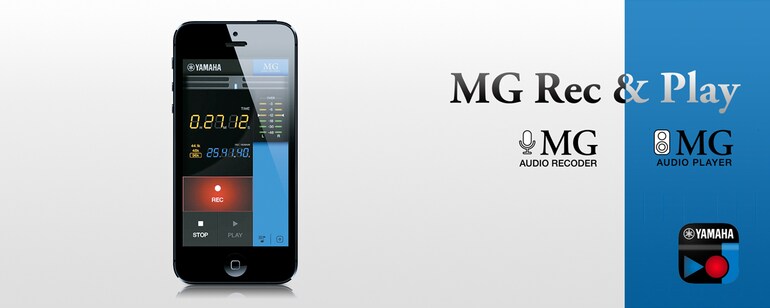 The MG Rec & Play software application enables high-quality recording, as well as fast and easy playback of songs and sound effects, by simply connecting your iPhone/iPad to any MG Series XU model.