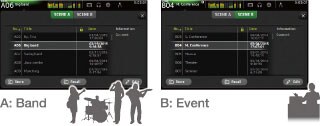 Память сцен имеет два банка А и Б, каждый из которых способен вместить до 100 сцен. В общей сложности это 200 сцен, которые могут быть внесены в память и при необходимости мгновенно вызваны. Некоторое количество сцен запрограммировано таким образом, чтобы обеспечить пользователям так называемую «опорную точку»: для упрощения работы сцены с управлением при помощи однокнопочных регуляторов 1-knob COMP и 1-knob EQ объединяются, а для опытных звукорежиссёров, которые следуют стандартной процедуре, возможно полное отключение функции однокнопочных регуляторов. Банки памяти идеальны для сортировки различных типов сцен: например, один банк для сцен категории по типу музыки, а другой – по типу мероприятия.