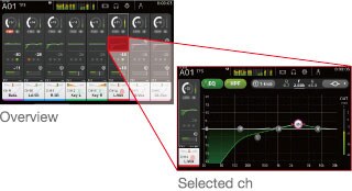 Как и в серии консолей CL вся работа со звуком базируется на взаимодействии с окнами общего обзора (Overview) и выбранных каналов (Selected Channel). Окно общего обзора отображает параметры восьми каналов одновременно, в то время как цифровые потенциометры обеспечивают прямой доступ к революционным регуляторам 1-knob EQ™, 1-knob COMP™, порогу чувствительности, уровню посыла эффекта, панорамированию и другим параметрам. Когда вам нужны подробные параметры для более точного управления просто нажмите на выделенный параметр второй раз, чтобы перейти к отображению выбранного канала.