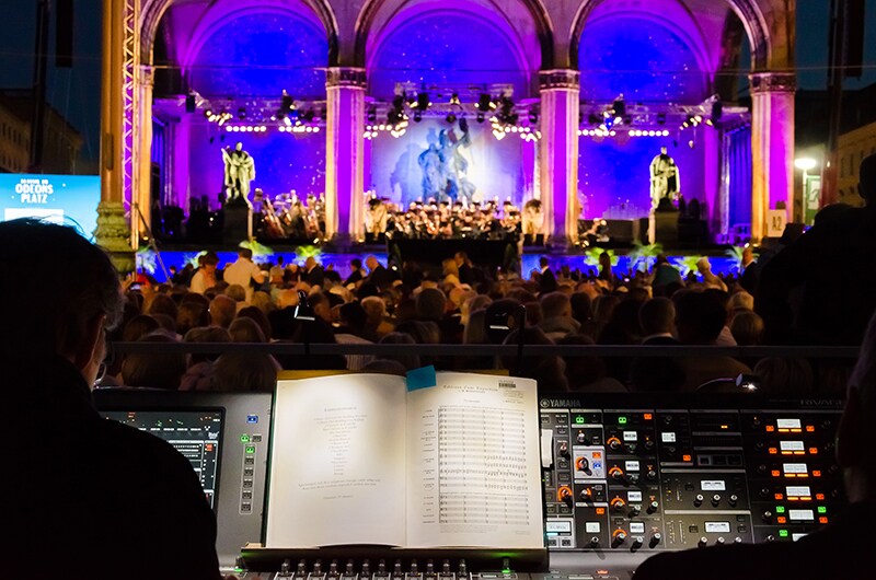 For two evenings every year, Munich’s central Odeonsplatz swaps its usual traffic and pedestrians for a sold-out, 16000-strong audience enjoying a major classical concert. 2017 marked the first time that a Yamaha RIVAGE PM10 digital mixing system was used on one of the city’s most prestigious events.