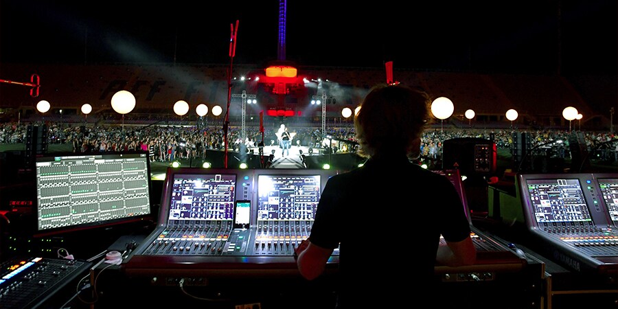 “The 1500 musicians were grouped by instrument and split in two, so there were two ‘drum areas’, two ‘bass areas’, two ‘guitar areas’ and so on,” says Yamaha’s Alessandro Arturi. “As you can imagine, several hundred drum kits and electric guitar amplifiers make a lot of noise by themselves! We supplemented this for the mixes with microphones - either close miking or one microphone per two or three instruments.