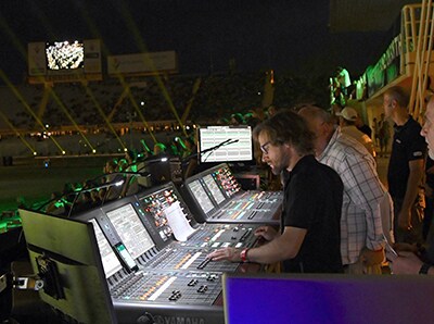 With a channel count of over 300, a RIVAGE PM10 digital mixing system was used for the FoH mix, featuring two CSR-10 control surfaces, four RPio622 and one RPio222 I/O racks on a TWINLANe fibre optic ring. This system worked side-by-side with a Dante network, which included QL5 and QL1 digital mixers, a Rio1608-D2 I/O rack and two RMio64D Dante/MADI conversion I/O racks to manage monitoring for all the musicians, as well as multitrack recording and communication with the main PA amplifiers.
