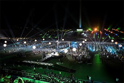 Yamaha Commercial Audio Italia is a technical partner of the event and this year staff were faced with the huge task of mixing Front of House and monitors for an 18 song, two-hour performance of rock classics by a band of over 1500 singers, guitarists, bass guitarists, drummers, keyboard and wind players.