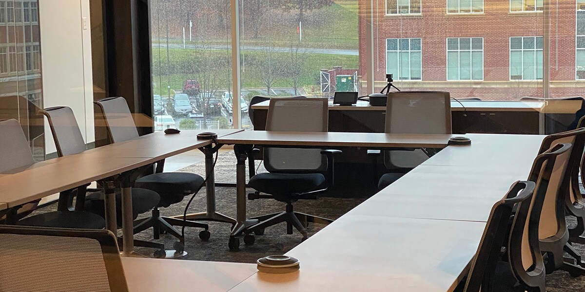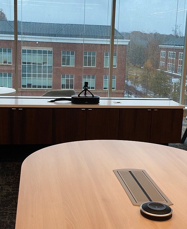 Институт биокомплексности изучает многогранное взаимодействие между живыми и неживыми системами — по сути, жизнь. Два года назад организация открыла новое здание на территории кампуса Виргинского университета в Шарлоттсвилле. В здании размещено множество конференц-залов, комнат для совещаний и других помещений для совместной работы, используемых для обучения, исследований и встреч. До COVID-19 в этих помещениях было установлено стандартное оборудование для конференц-связи потребительского уровня. Однако вскоре оказалось, что продукты непросто интегрировать с используемой организацией системой управления помещениями Crestron и что они не обеспечивают качество звука, необходимое для частого проведения дистанционных лекций и встреч, необходимость в которых возникла из-за COVID-19.