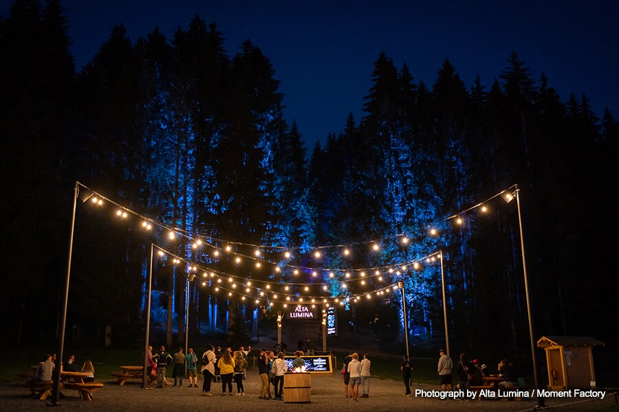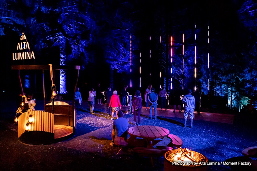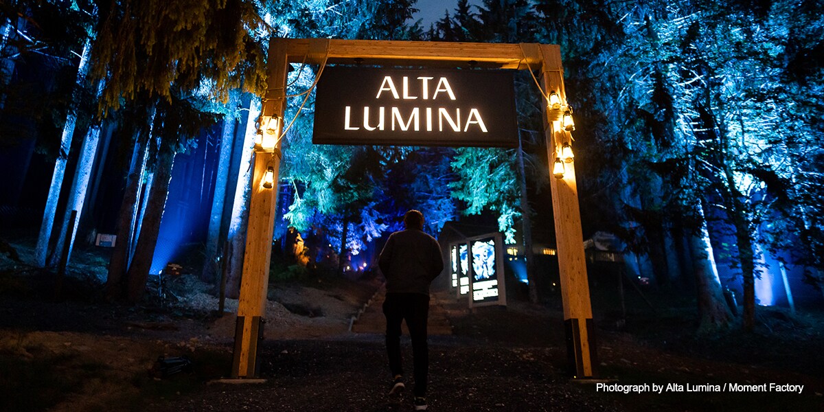 Alta Lumina — это 12-я ночная прогулка Lumina от Moment Factory и первая в Европе. Посетителям предлагается пройти по километровой тропе, где звуковые и световые инсталляции разыгрывают историю путешествующего композитора и его воздушного шара. Природа ночных прогулок Lumina позволяет сохранять значительное расстояние между посетителями, поэтому творческая команда смогла создать высококачественную аудиовизуальную инсталляцию практически без компромиссов.
