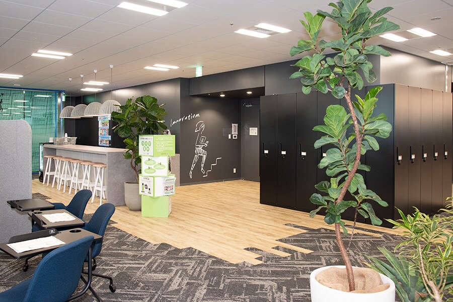Г-н Вашияма: База инноваций в Нихонбаси — это место, где члены рабочей группы из разных компаний могут создавать новый бизнес, творить и работать совместно с нашими клиентами и партнерами как здесь, так и за рубежом. Помимо офисных помещений, эта база предлагает залы для проведения онлайн-конференций, первый стенд Zoom в Японии и открытое пространство для инноваций, где была установлена ADECIA.