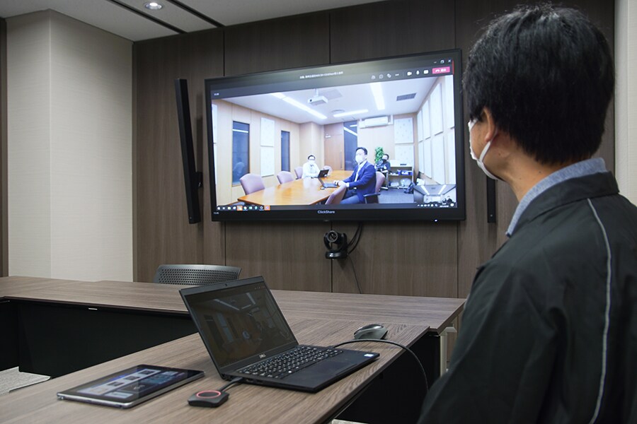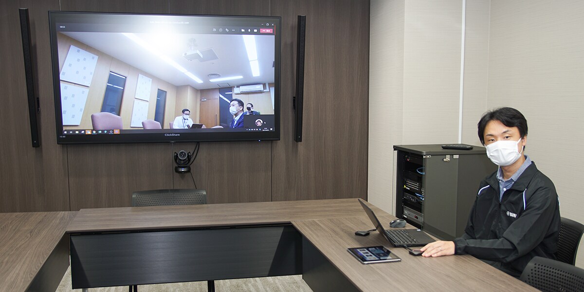 Юсуке Тойоура: система ADECIA и ClickShare также были установлены в конференц-зале офиса Yamaha в районе Таканава, к которому мы сейчас подключены.