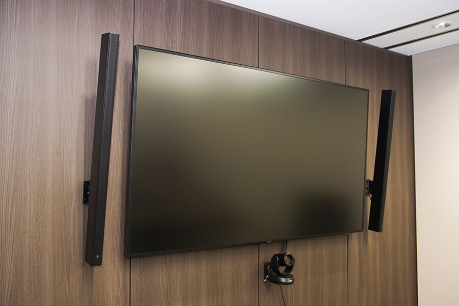 Юсуке Тойоура: обычно мы проводим внутренние встречи и телеконференции с нашими деловыми партнерами. Это не специальный демонстрационный зал, но если Вы с нами свяжетесь заранее, мы сможем провести Вас в офис в районе Таканава и показать установленную там систему. Сейчас Вы можете поближе познакомиться с качеством звука и работой системы ADECIA во время удаленной конференции между демонстрационным залом в районе Хакодзаки и офисом в районе Таканава, а чтобы еще лучше услышать возможности микрофонов Yamaha, Вы можете подключиться к другим конференц-залам наших клиентов. Более того, в конферен-зале офиса Yamaha в районе Таканава также установлены акустические панели под названием TCH. Это простые панели толщиной 3 см, которые служат для улучшения качества звука в помещении. Вы и сами можете убедиться в их работе.