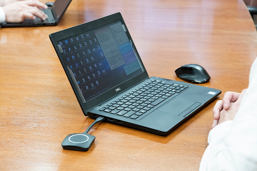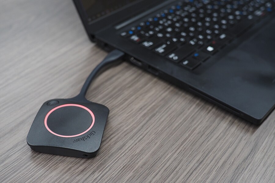 Передатчик ClickShare, подключенный к порту USB компьютера