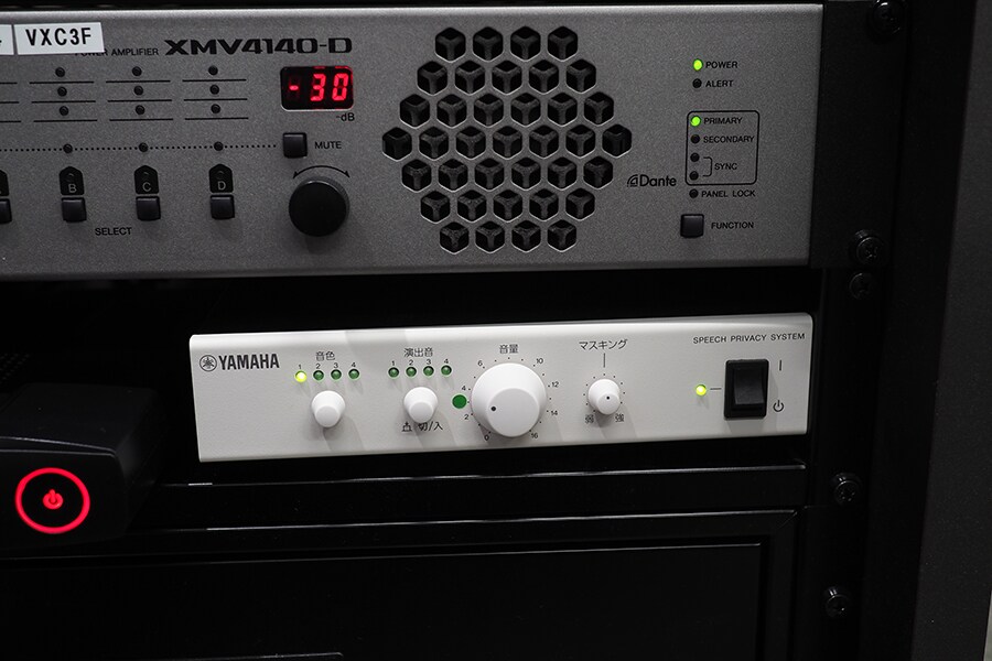 Кроме системы ADECIA, демонстрационный зал также оснащен системой конфиденциальности переговоров под названием VSP-2, которая воспроизводит маскирующие звуки для защиты конфиденциальности разговора и создания офисной среды, где можно полностью сосредоточиться на работе. Мы также проводим демонстрации этой системы.