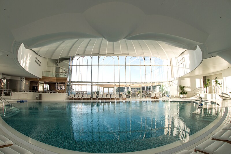СПА-центр и фитнес-клуб включают в себя два крытых бассейна с подогреваемой морской водой, а также холодный бассейн, хорошо оборудованный гимнастический зал и зал для кардио-тренировок, мужскую и женскую сауны, солярий и джакузи.