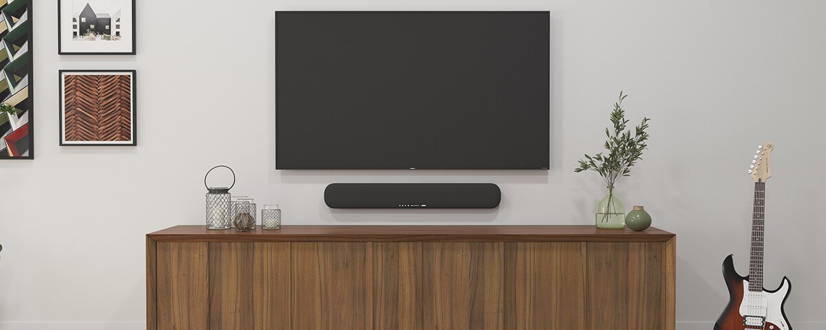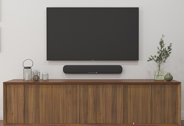 Не нужно освобождать место ни для чего, кроме одного небольшого саундбара. Встроенный сабвуфер позволяет этому устройству оставаться компактным, но при этом обеспечивать мощный бас.