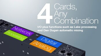 С модулем коммутации RSio64-D возможно использование более 30 типов плат Mini-YGDAI. Это могут быть не только платы ввода/вывода, работающие с AES/EBU, ADAT и другими форматами, но и платы с функциями процессора Lake, плагинами автоматического микширования Dan Dugan.