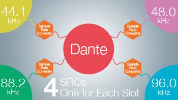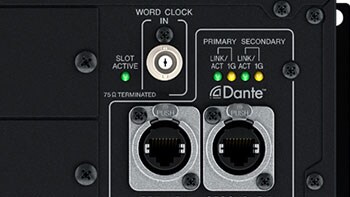 В слоты RSio64-D возможна установка четырех плат кодирования/декодирования MY8-SDI-ED, которые будут обеспечивать двунаправленное преобразование сигналов Dante и HD-SDI/SD-SDI. Преобразователи частоты дискретизации, встроенные в слоты RSio64-D, позволяют подключать устройства, работающие с разной тактовой частотой, без опасения вызвать помехи или прерывание сигнала.