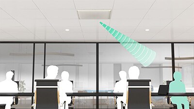 RM-CG - это потолочный микрофонный массив, оснащенный Многолучевым отслеживанием одновременно звучащей речи нескольких участников разговора. Поскольку данные лучи выявляют и отслеживают направление источника звука по голосу говорящего, необходимость в предварительной настройке расположения или диапазона приема звука отсутствует.